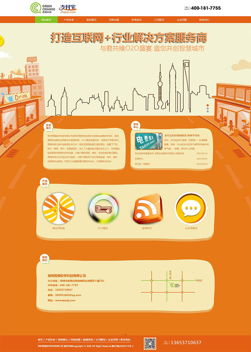 鄭州青橙軟件科技有限公司(簡稱青橙科技)是支付寶錢包戰(zhàn)略合作伙伴,是全國領(lǐng)先的移動(dòng)應(yīng)用解決方案提供商,O2O落地實(shí)操專家,總部位于中國·鄭州。
