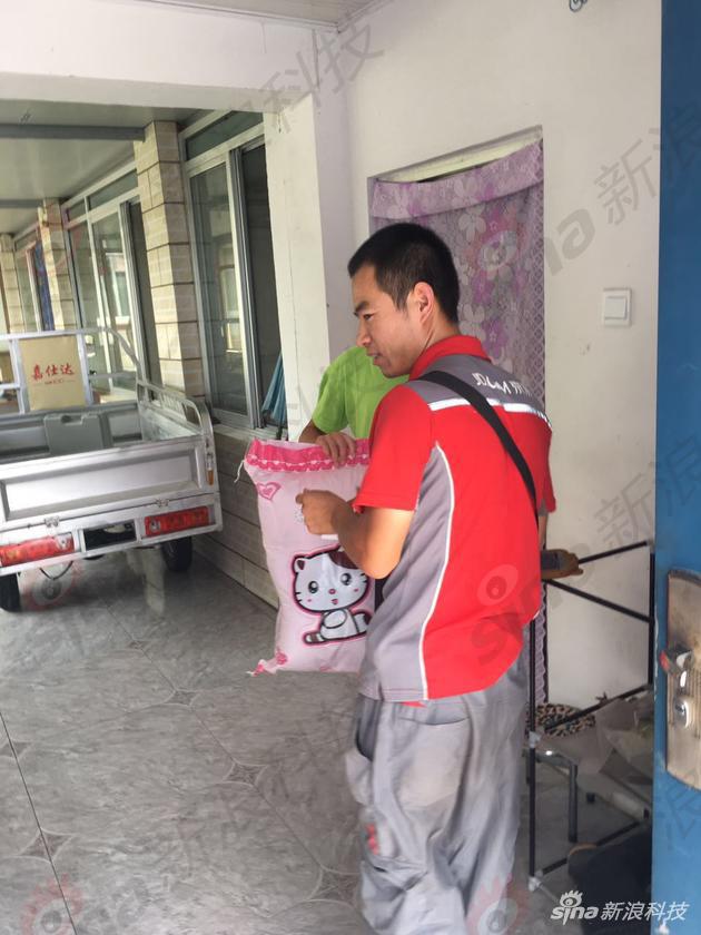 據(jù)了解,張書華每天早上6點到站點集合,與站里的其他同事一起將當天雁棲湖站點的訂單從貨車上卸下,8點半之前,他們需要將自己片區(qū)內的貨通過POS機攬入自己名下,之后從站點出發(fā),開始送貨。